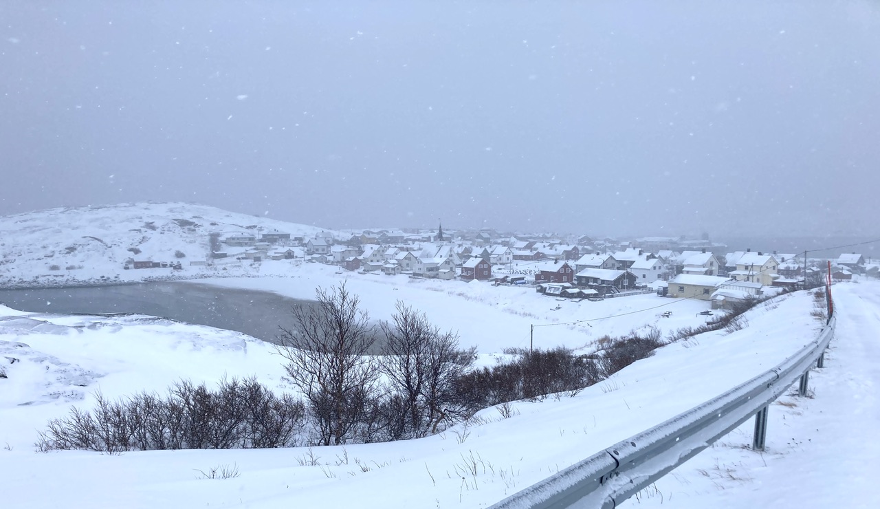 Bugøynes i dag, andre juledag. Kl 10:40. Pluss 3 grader. Frisk bris fra nordvest.