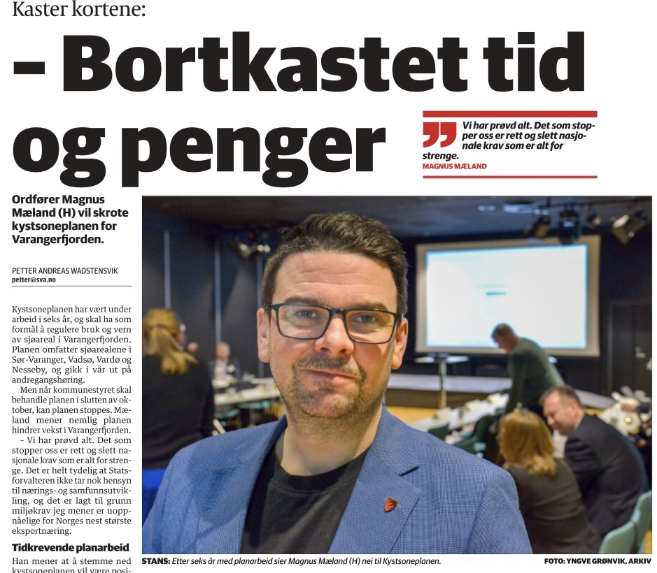 Ellers så er det kanskje ordførerens uttalelser i Sør-Varanger Avis, som bildet viser, som kanskje er den saftigste fiskerimeldinga i uka som gikk.