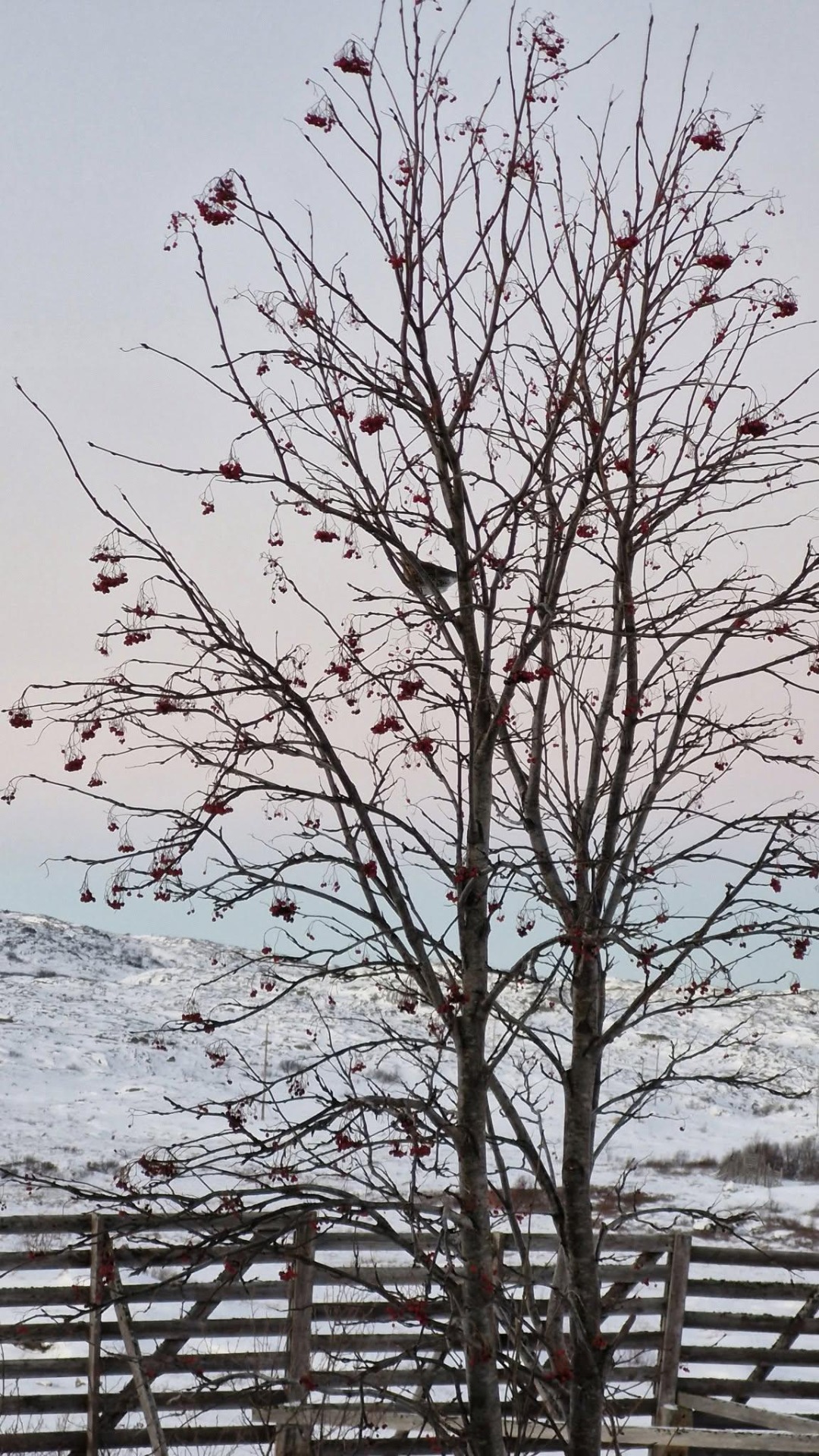 Morgenen etter så har den hatt en aldri så liten matorgie i kuben, noen få rognebær er alt som er igjen!