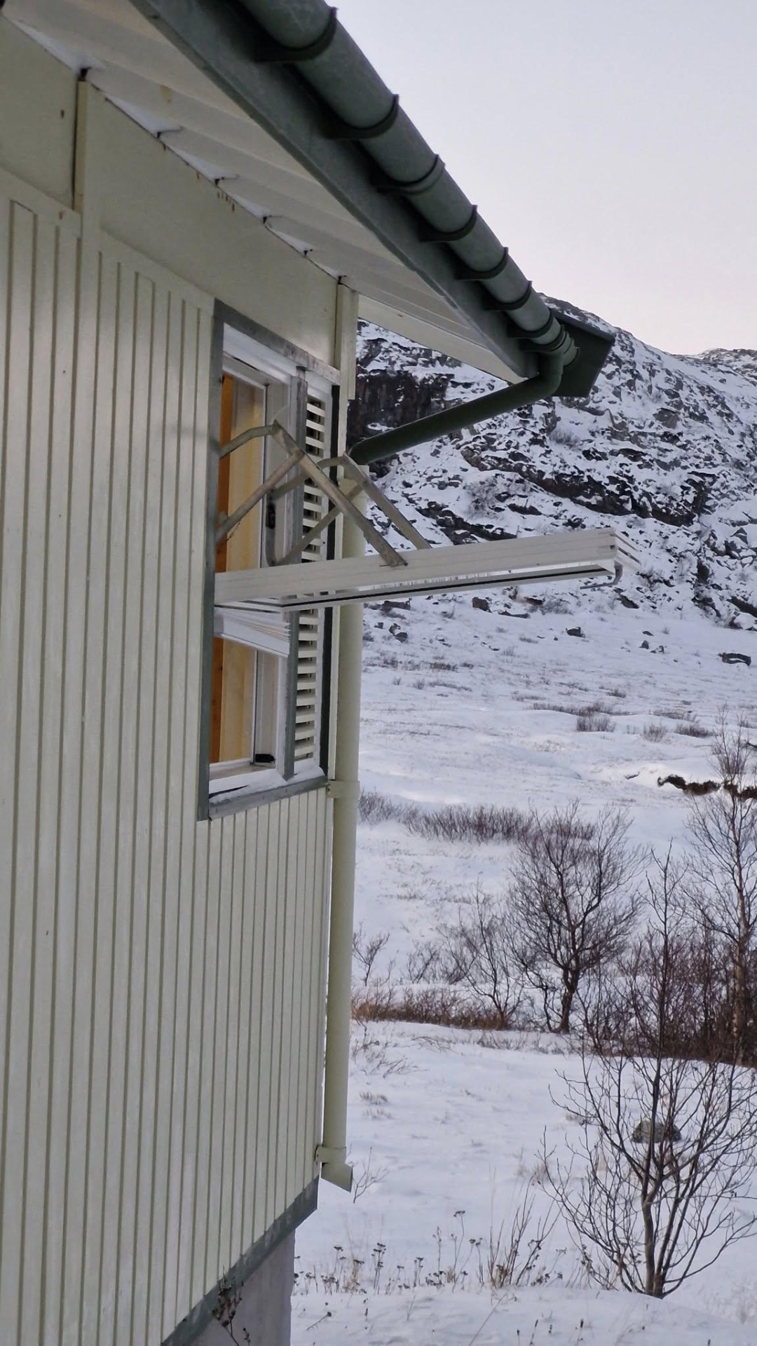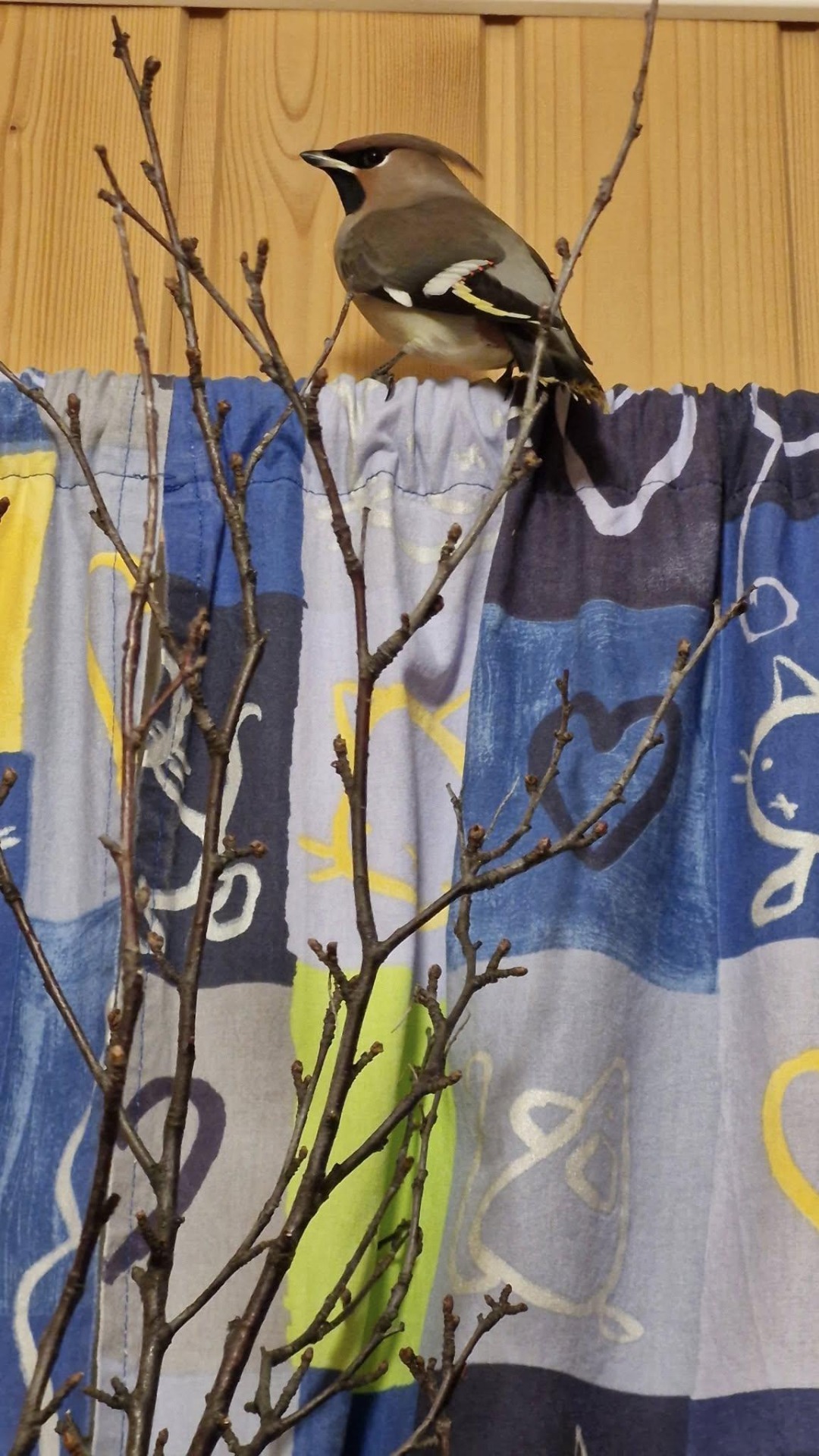 Vinduet ble skjøvet opp på nordsiden av husert, ruta sto i vannrett posisjon. Og undere over alle undere; en liten flokk sidensvanser kvitret seilende forbi, lyden lokket Svansen opp til gardinstanga. Vi forlot rommet, tenkte at fuglen ordner dette selv.