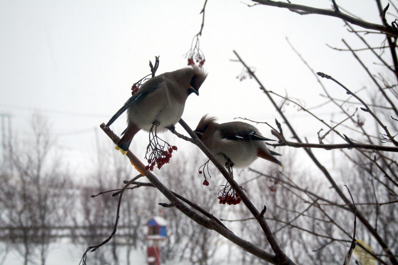 Det var sikkert ikke tilfelle, men det var som om de to artsfrendene og hele sidensvansflokken var kommet for å få Svanse med seg, for vi hadde ikke sett flokken på mange dager.