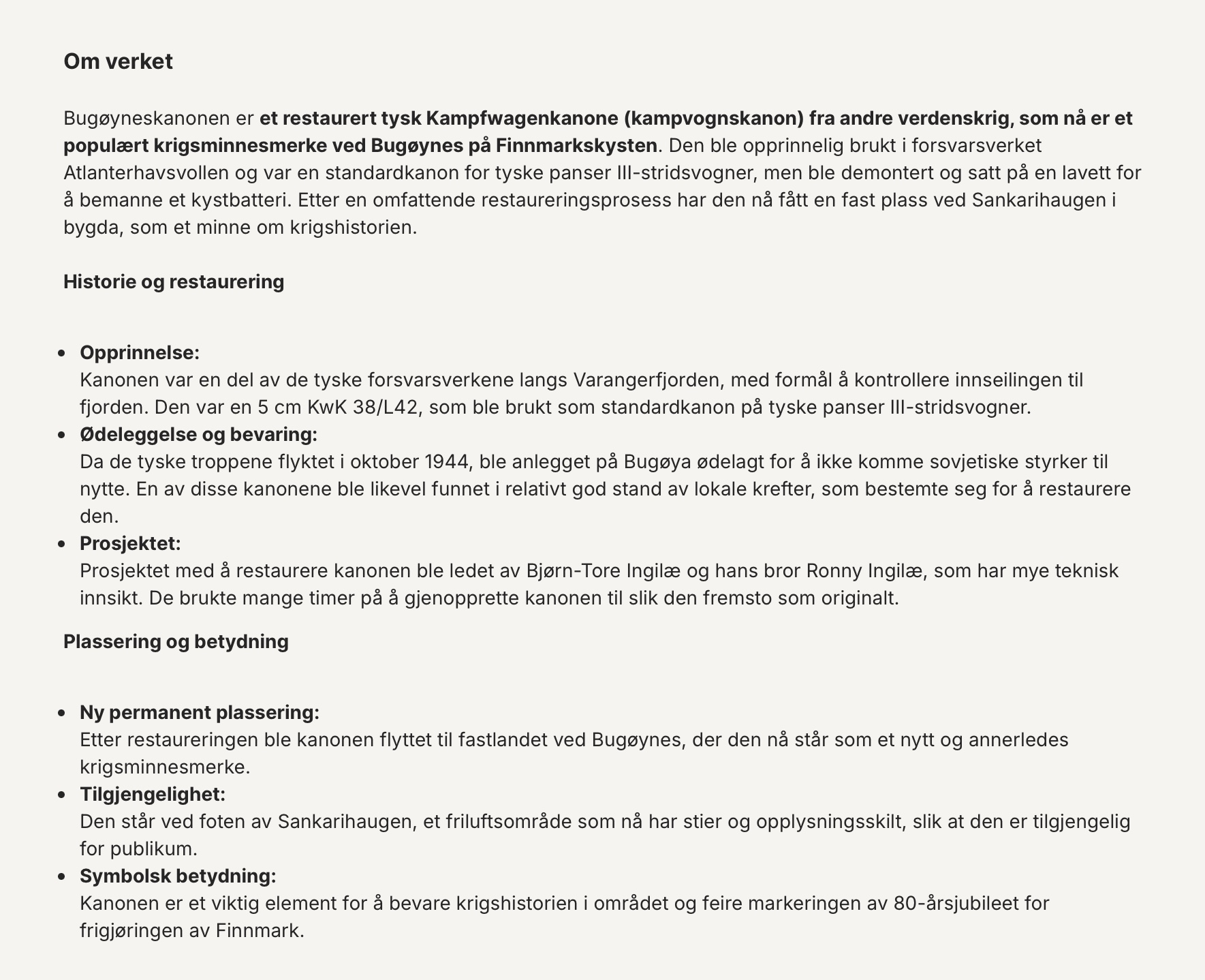 Og et spørsmål til slutt: Hvor mange fastboende i bygda ble spurt om de ville ha kanonen der den står nå?